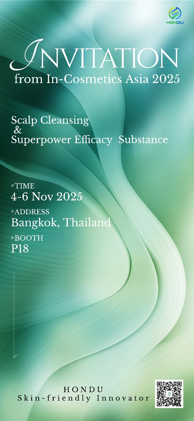 2025年亚太美妆行业年度盛会——In-Cosmetics Asia,将于11月4日至6日在泰国曼谷BITEC会展中心盛大启幕。届时HONDU宏度将携头皮清洁解决方案&超能功效物亮相展会(展位号Booth:P18),诚邀您莅临共鉴,一起探索新的清洁&功效体验!